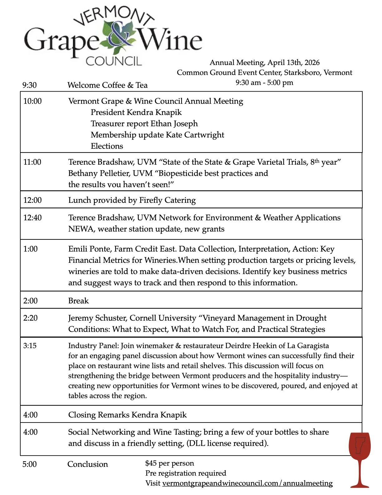 Join the University of Vermont Extension for an update on current work shaping the future of Vermont viticulture. Topics will include results from ongoing cold-climate grape variety trials (8th year for 9 varieties), and new developments in vineyard weather monitoring through the Network for Environment and Weather Applications (NEWA). These presentations will highlight how research and collaboration continue to support resilient vineyards and the evolving Vermont wine industry.